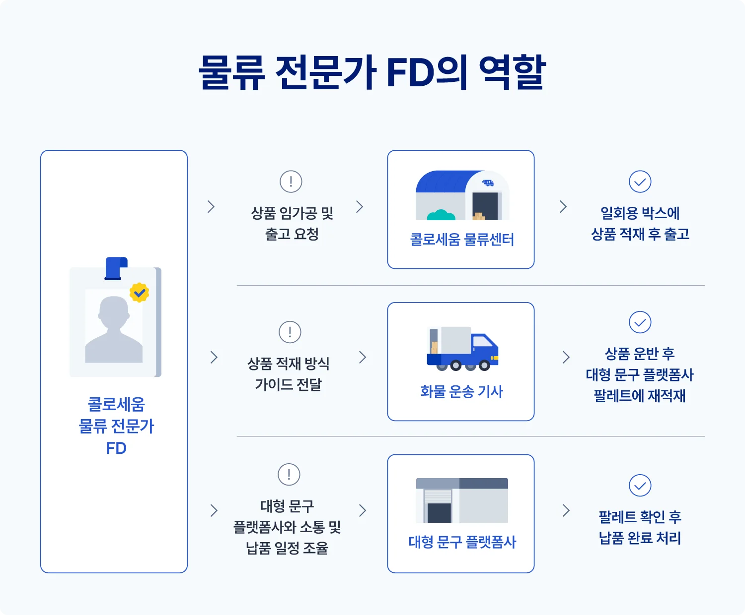 물류를 효율성있게 운영하려면 근본적으로 B2B 기업형 물류이든 일반 B2C 배송이든 물류 생태계에 대한 전반적인 이해가 있어야 합니다. 그래야 물류전문가 FD로서 물류 파트 중 생산성이 저하되는 부분을 빠르게 캐치해 손실을 방지하고, 능동적으로 물류 프로세스를 재설계할 수 있으니까요.
