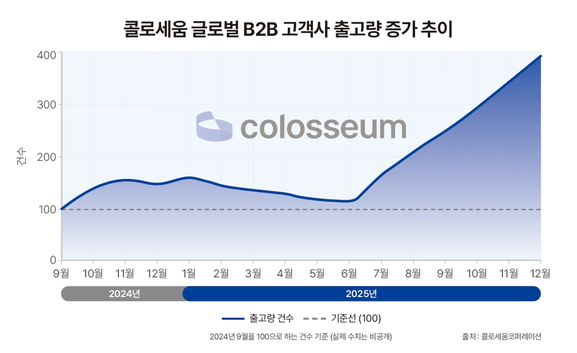 콜로세움은 이에 따라 MOQ(최소 주문 수량) 제한 없이 해외 물류기지를 활용한 ‘첫 수출 지원 프로그램’을 파일럿 형태로 시범 운영해 왔다. 그 결과 Amazon을 중심으로 한 판매량과 출고 건수, 시범 운영에 참여한 첫 수출 지원 브랜드들의 출고량이 전반적으로 증가하는 성과가 나타났다.